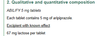 1. 详细调研参比制剂相关信息,包括产品说明书和审评报告,可获得产品处方。部分欧洲说明书中能获得个别辅料的用量。下图为EMC下载的Abilify 5 mg tablets英国说明书截图。